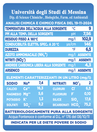 Questi elementi fisici e fisico chimici definiscono le principali proprietà di acqua Fontenoce, rendendola “una tra le migliori acque minerali d’Italia”.
